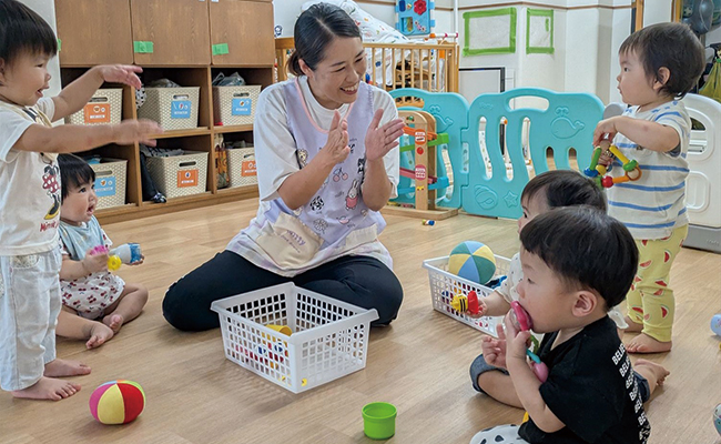 生後57日よりお預かりしております。一人ひとりの発達に応じたきめ細やかな保育を展開しています。